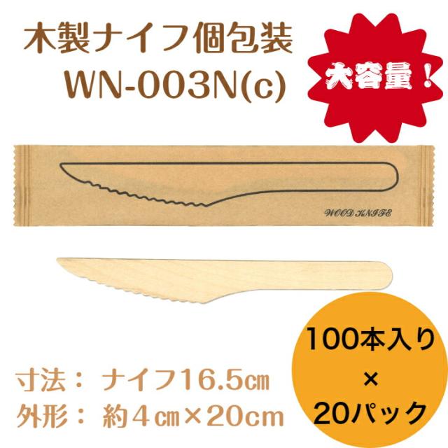 九州紙工 ウッドカトラリー 完封 ウッドナイフ 紙包装 2000本入り(100本×20袋) 木製ナイフ 個包装 使い捨て エコ カフェ アウトドア おもてなし