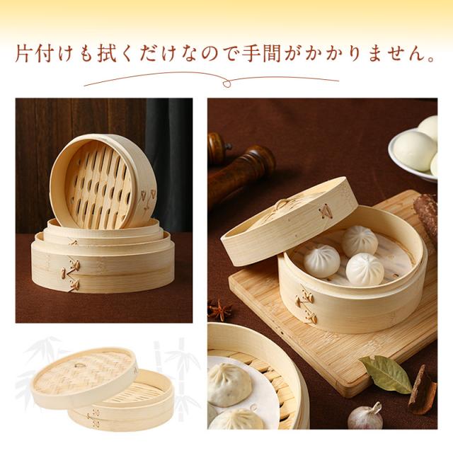 優れた抗菌性と調湿性を備えた竹製の中華セイロ。