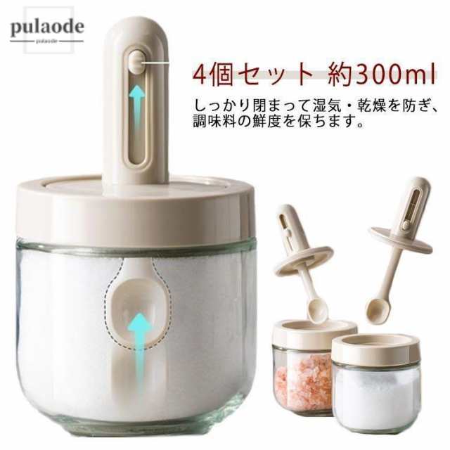 砂糖 塩 スプーン付き 塩入れ 調味料入れ 調味料ボトル 胡椒 約300ml スパイスボトル スパイス入れ 4個セット スリム ボトル キャンプ 4個