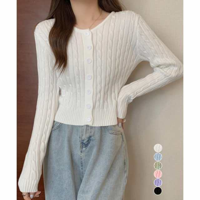 ケーブル編みが旬のシルエットに見せてくれるショート丈のニットカーディガン