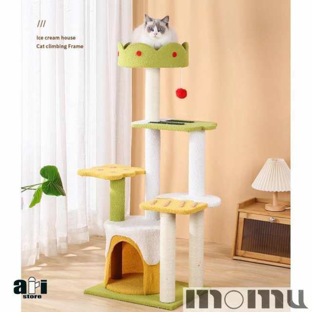 キャットタワー スリム 麻紐 爪とぎ おもちゃ 猫タワー 省スペース 頑丈 据え置き キャット 猫 タワー ネコハウス 頑丈 子猫 シニア アイスクリーム