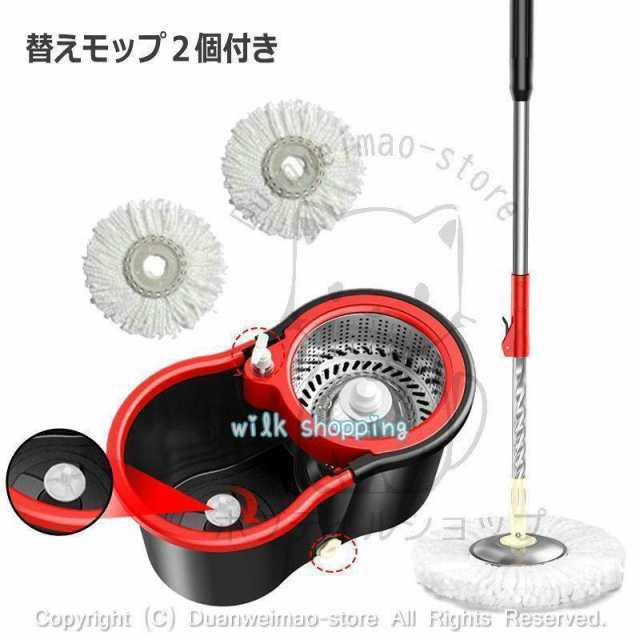 回転モップ 水切り モップ替え 2個付 スピンモップ 洗浄二槽式 軽量 脱水 バケツ 耐久性 分離式 便利 手軽 掃除 掃除用品 水拭き おしゃれ