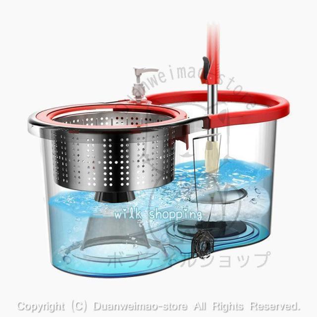 ■商品名:回転モップ 水切り モップ替え 2個付 スピンモップ 洗浄二槽式 軽量 脱水 バケツ 耐久性 分離式 便利 手軽 掃除 掃除用品 水拭き おしゃれ