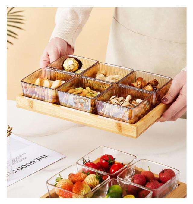 | サイズについての説明 | 9点(小鉢*4*蓋*4*トレー*1) 小鉢サイズ:8.8*5.4cm トレーサイズ:20*20cm 高約2.8cm ※天然竹を使用していますので、画像の色とは異なる場合があります。また、製品ひとつひとつの木目は異なります。 |