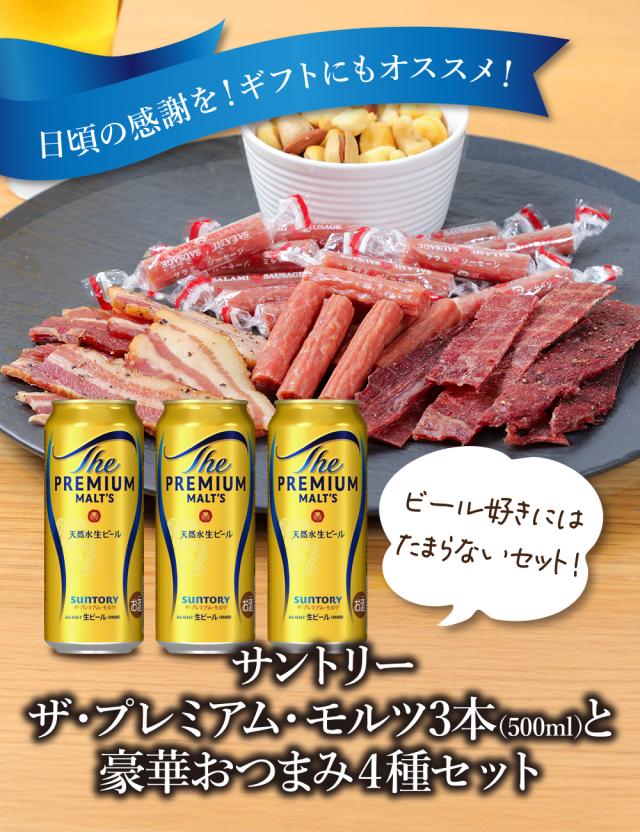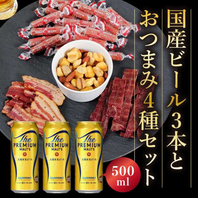 母の日 父の日 ビール おつまみ ギフトセット プレモル 500ml 3本とおつまみ5袋 セット お父さん 誕生日 サントリー ビール お酒 お祝い 結婚式 両親 父 男性 母 女性 父の日ギフト プレゼント 酒 父の日 お酒 おつまみ セット 宮内ハム ナッツ