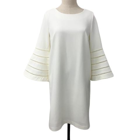 【中古】エアリーフェアリー ワンピース Iライン ひざ丈 はしごレース 無地 ベルスリーブ 長袖 S 白 ホワイト