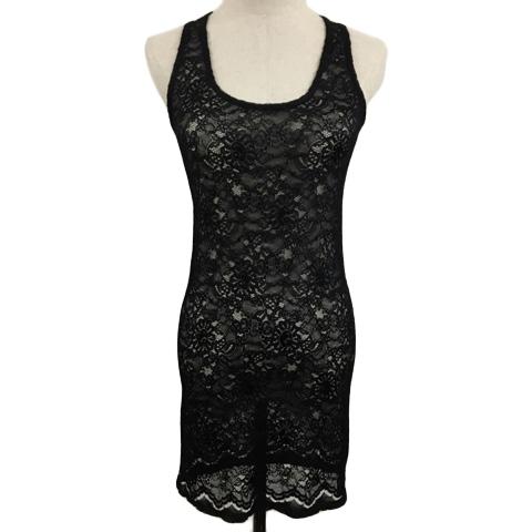 【中古】パトリツィアペペ ワンピース Iライン ミニ レース 総レース 透け感 ノースリーブ 1 黒 ブラック