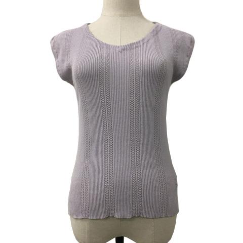 【中古】N.ナチュラルビューティーベーシック カットソー ニット Vネック リブ 透かし編み フレンチスリーブ M 紫
