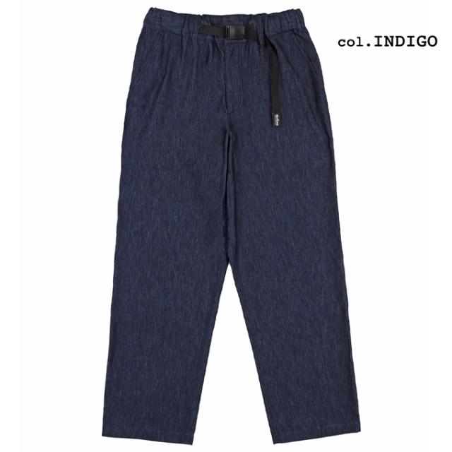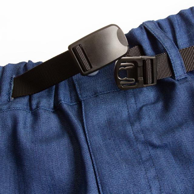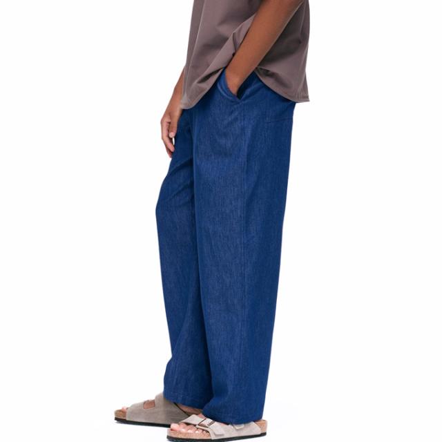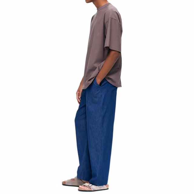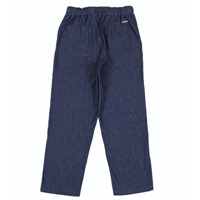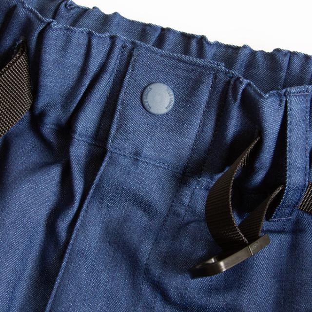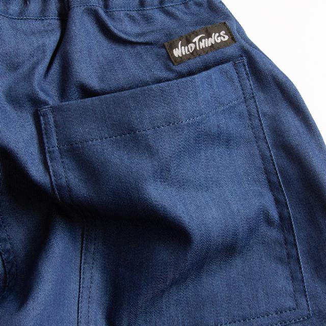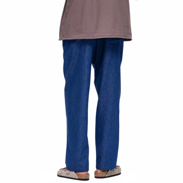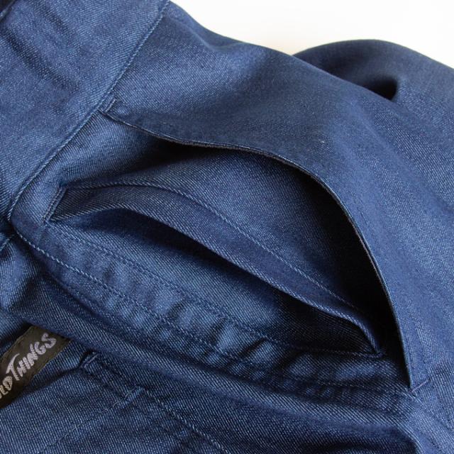 相性的に難しいとされていたインディゴ染料とナノテックス加工の両立を試行錯誤の末、完成させたWILD THINGSオリジナルの薄手ストレッチデニム素材を使用したパンツ。