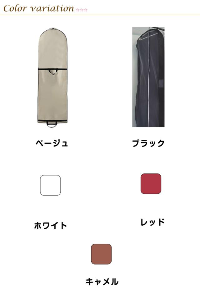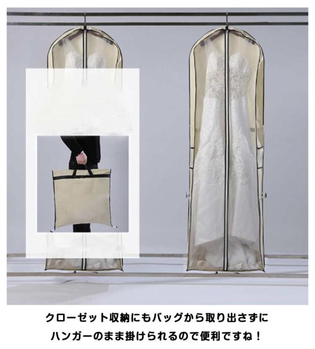 | ロングドレスの収納、移動に便利なドレスカバーです。 ハンガーにかけたままドレス収納が可能 持ち手の付いたバッグ型になるので移動も楽々。 クローゼット収納にもバッグから取り出さずにハンガーのまま掛けられるので便利ですね! | |
