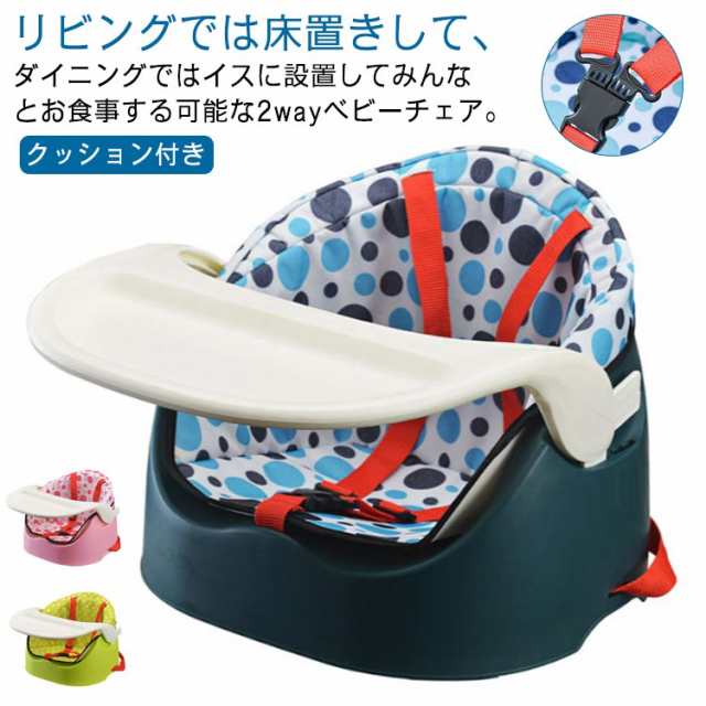 | リビングでは床置きして、ダイニングではイスに設置してみんなとお食事する可能な2wayベビーチェア。【クッション付き】 リビングで座イス、ダイニングで大人のイスに取り付けて、2WAYの使い方ができます。 椅子に取り付ける場合は、座面の幅・奥行きともに39cm以上の椅子に御使用下さい。 テーブルに近づけて食事ができるので、おなかとの隙間が少なくなり、食べこぼしが減少しました。 シンプル設計で隙間のない一体構造にすることで、食べこぼしてもお掃除がしやすくなりました。 クッションも椅子も汚れても水洗いができるのでいつでも清潔にご使用できます。 | |