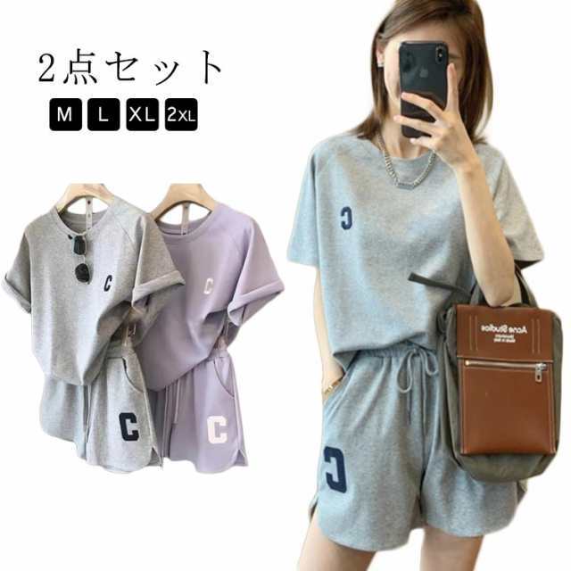 半袖 スウェット tシャツ ルームウェア 上下セット ハーフパンツ Tシャツ 夏 ジャージ レディース ショートパンツ 2点セット 薄手 半袖 セットアップ ゆったり 大きいサイズ スポーツウェア 運動着 韓国ファッション カジュアル