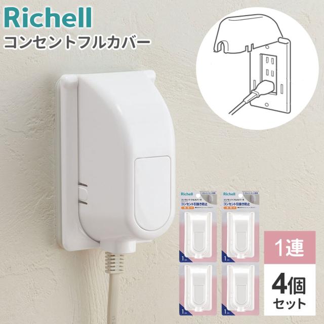リッチェル コンセントカバー ベビーガード コンセントフルカバー R 4個セット | コンセントガード 1口〜3口 赤ちゃん コンセント 隠す 塞ぐ 引き抜き 感電防止 お子様 子供 ほこり リビング 安心