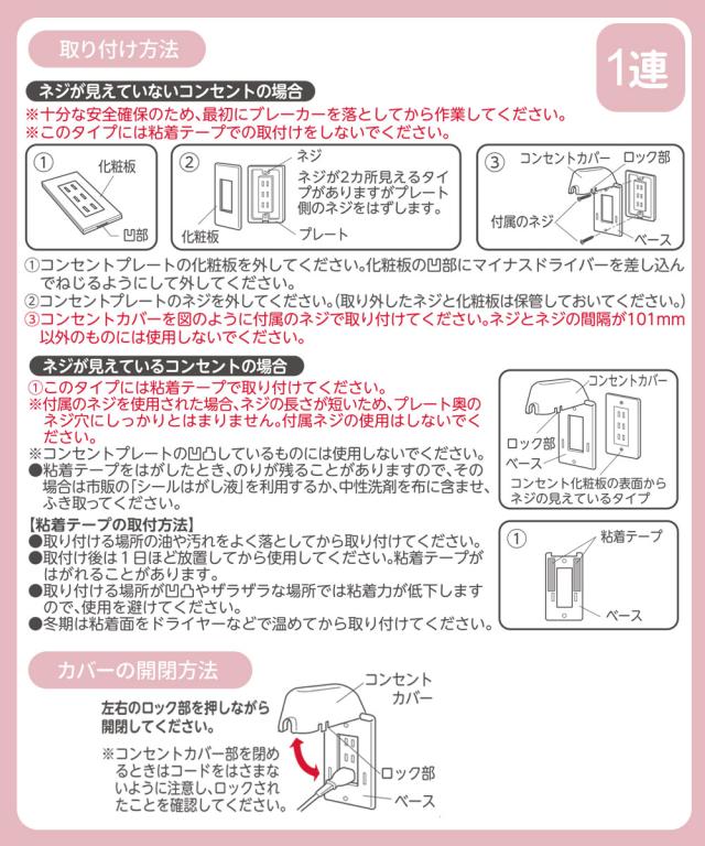 粘着テープ付きネジが見えているコンセントの場合、粘着テープで取り付けが可能です。