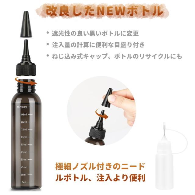 ・ニードルボトル付き、持ち運びや注入しやすい。