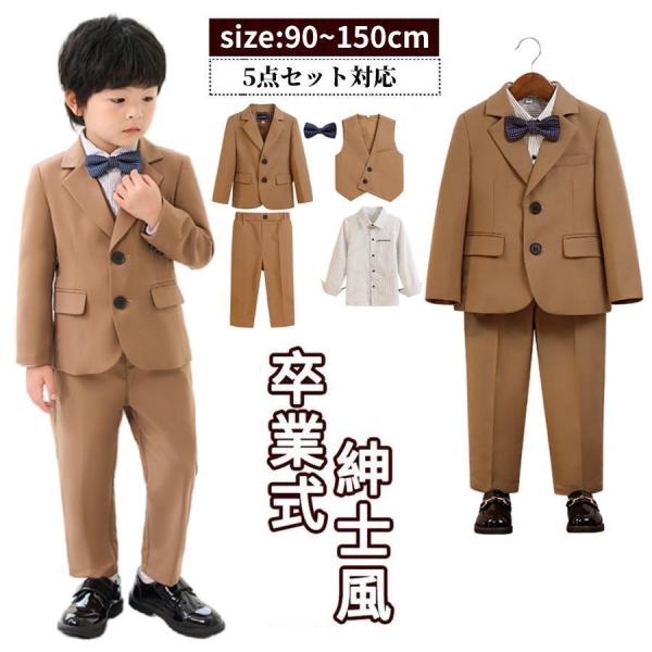 男の子 スーツ フォーマル 入学式 おしゃれ キッズ 七五三 株式会社S&L 結婚式 ピアノ発表会 卒園式 入園式 卒業式 ブラウン 90 100 110 120 130 140 150