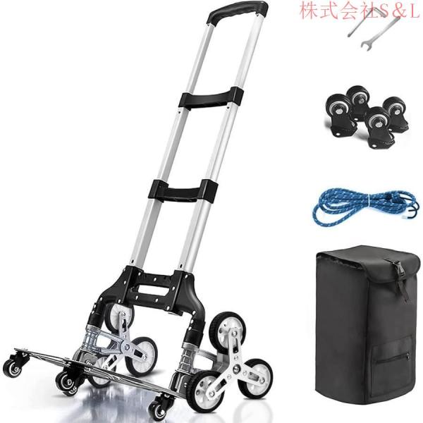 キャリーカート階段3輪折りたたみ業務用ハンドトラック段差台車軽量静音大型タイヤ高さ調節組み立て不要S&L固定ロープ付荷物運搬業務用引越し釣り