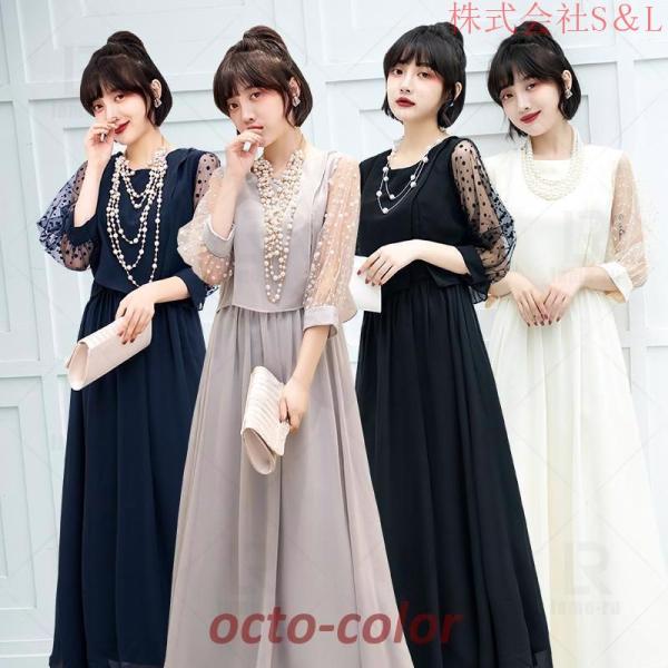 パーティードレス 結婚式 ワンピース ドレス 大きいサイズ 袖あり ロング丈 ロング フォーマルドレス 株式会社S&L ミセス レース 安い 夏 おしゃれ 20代