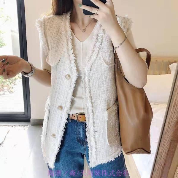 ツイードベストジャケットレディース40代大きいサイズVネックS&Lジレベストツイードジャケット春秋大人韓国風通勤卒業式入学式入園式服装母30代o