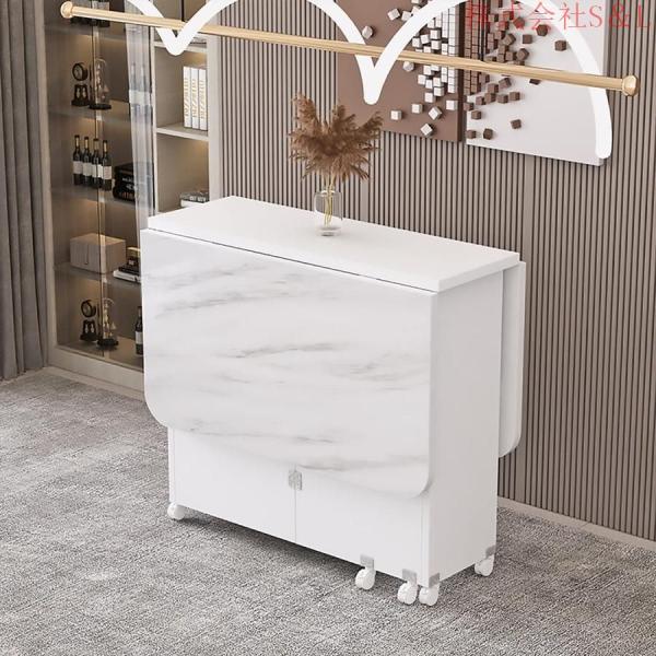 ダイニングテーブル 折りたたみ、2層収納棚付き折りたたみダイニングテーブル、ダイニングテーブル 伸長式、6輪付き折りたたみダイニングテーブル ダイニングテ