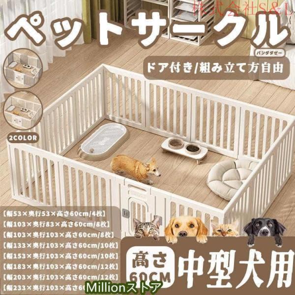 ペットサークル ペットフェンス ペットケージ 犬用サークル サークル ゲージ 犬 中型犬 室内用 おしゃれ 広い 株式会社S&L 組み立て方自由 ドア付き 高さ60cm