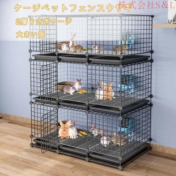 2層うさぎケージ大きい兎ケージペットフェンスウサギケージ大きい兎ケージ家庭用屋内ペットウサギS&L飼育ゲージDIYケージ組え自由多頭飼い脱走防止持ち運び