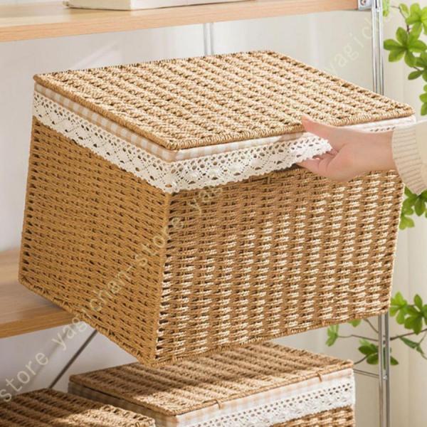 籐かごバスケット 収納ふた付きカゴ 収納ボックス 棚クローゼット かご かご S&L 収納ボックス フタ付き 収納バスケット 収納カゴ 籠 ふた付き ふたつき 蓋付き