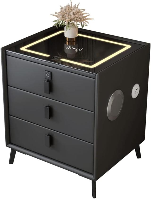 ナイトスタンド 現代のミニマリストのベッドサイドテーブル多機能の3層引き出しベッドサイドテーブルガラスカウンタートップランプサイドキャビネット ベッドサ