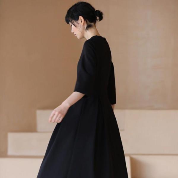 ワンピース レディース 大人 ロング 黒 フォーマル ロング丈 ミモレ丈 上品 きれいめ フレア 卒業式 入学式 喪服 オフィス 通勤 OL ママ 七