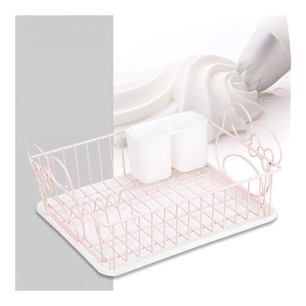 メタル可愛い単層ディッシュドレンラックキッチンラック収納ラックドレンバスケットとカトラリーバスケット(ピンク)