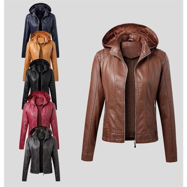 レザージャケット 革ジャケット 厚手 裏起毛 革ジャン レディース ライダースジャケット 株式会社S&L 皮ジャン フード付き 防寒 防風
