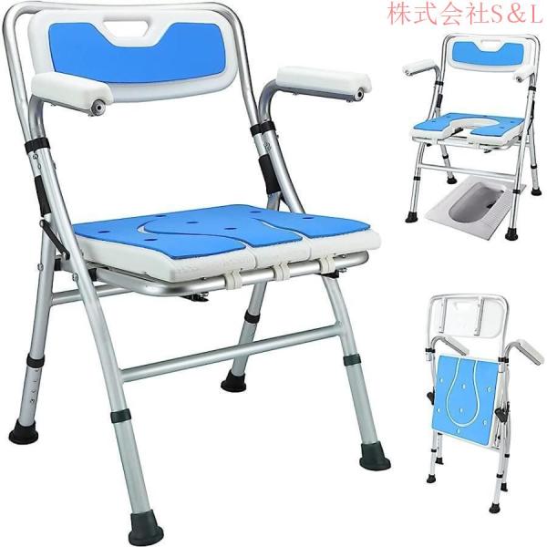 折りたたみシャワーチェア2022登場お風呂椅子バスチェア 4段階高さ調節可能 株式会社S&L耐荷重150KG MDM( 白+青い 70x54x17)