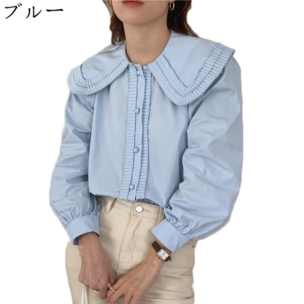 ブラウス ビッグ襟 プルオーバー レディース 長袖 丸襟シャツ パフスリーブ 株式会社S&L 無地 綿 春秋服 柔らか ギャザ 大人カワイイ エレガント