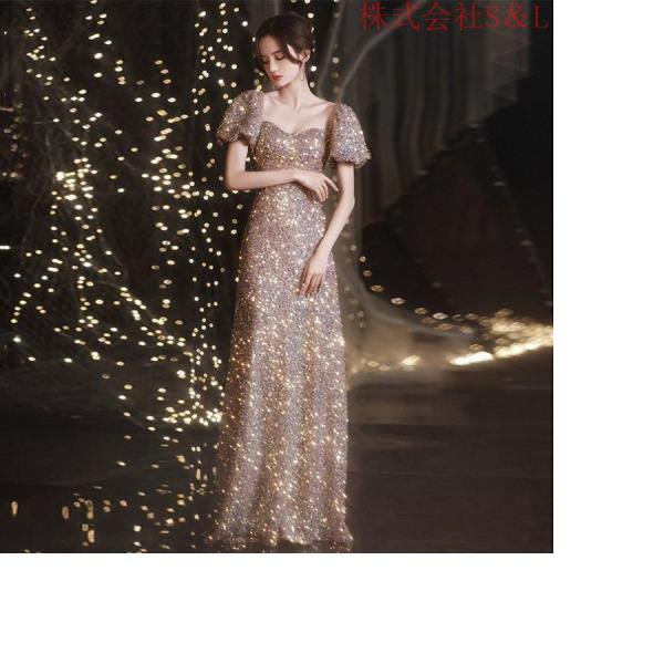 イブニングドレス レディース ロングドレス ワンピース 袖あり スパンコール オフショルダー エレガント お呼ばれドレス 演奏会 株式会社S&L演出司会 二次会
