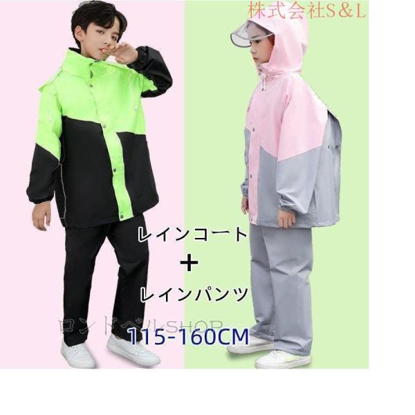 上下セット レインコート レインパンツ キッズ 女の子 男の子 子供用 キッズ ランドセル対応 かわいい おしゃれ 雨具 防水 カッパ 通園 S&L通学 収納バッグ付き