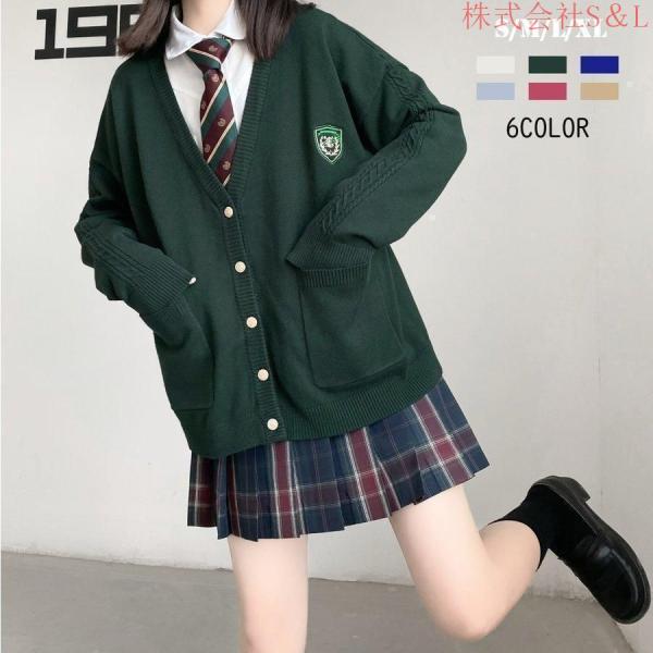 スクールカーディガン セーター 正統派 制服 女子高生 通学 Vネック 刺繍 女子 中学生 高校生 長袖 春秋冬 株式会社S&L