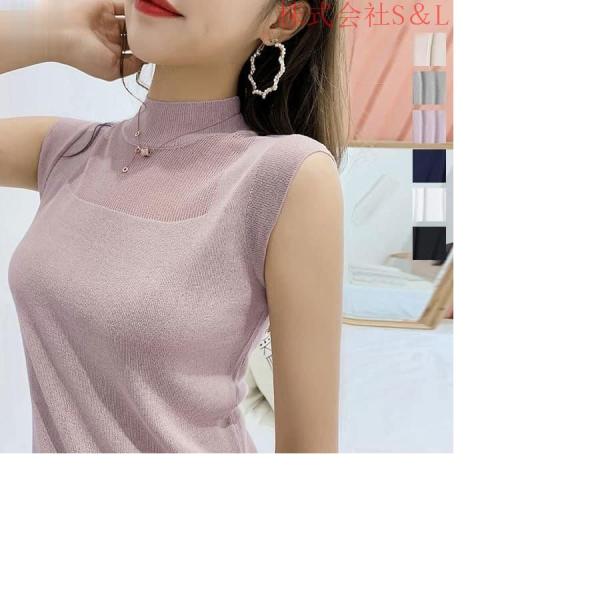 シースルーブロッキングハイネックノースリーブニット ノースリーブ ニット 株式会社S&L ハイネック レディース タンク ス シースルー 夏