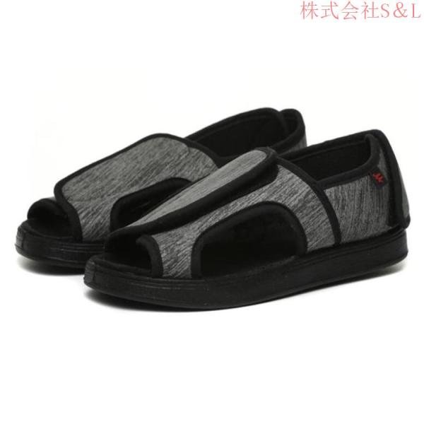介護シューズ 老人靴 室内 室外 リハビリ シューズ 調節可能 高齢者用シューズ 甲高 幅広 外反母趾 リハビリ 老人靴 株式会社S&L介護 父の日 敬老の日 グレー