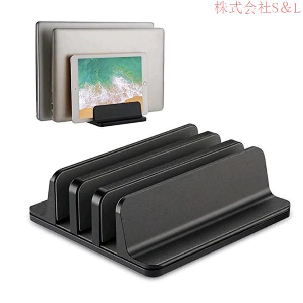 タブレットスタンドpcスタンドパソコンスタンドノートパソコンS&Lスタンドパソコンスタンド縦置き3台収納ラップトップスタンド縦置き幅調節可能滑り止