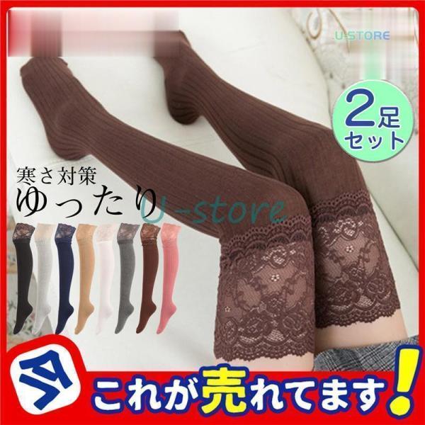 靴下 レディース ニーハイソックス 2足組 ソックス 女性用 レース シンプル 株式会社S&L かわいい 無地 ハイソックス 無地 蒸れ 秋 制服 シンプル