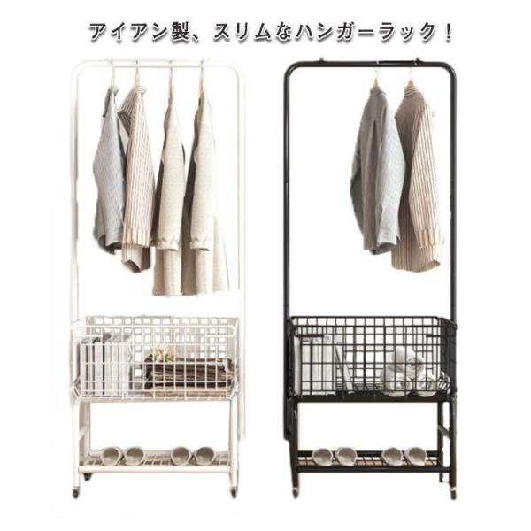 ハンガーラック おしゃれで頑丈 キャスター付き カゴ付 ハンガーラック スリム アイアン コートハンガー コート掛け パイプハンガー かご付き株式会社S&L棚付き