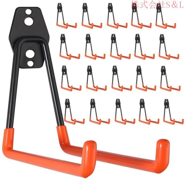 ガレージ用フック20個ツールフックガレージ収納フック滑り止め加工物掛けフック壁面取付工具ダブルフックS&L強力な耐荷重ガレージストレージハンガー頑