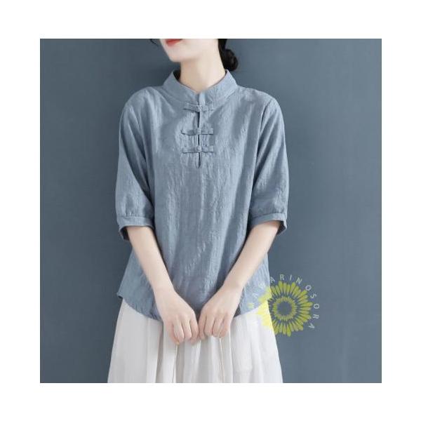 チャイナドレス風シャツ 半袖ブラウス 6色 太極拳服 朝練 武術服 チャイナ風 リネン 春秋 レディース スリット株式会社S&L 綿麻 中国風