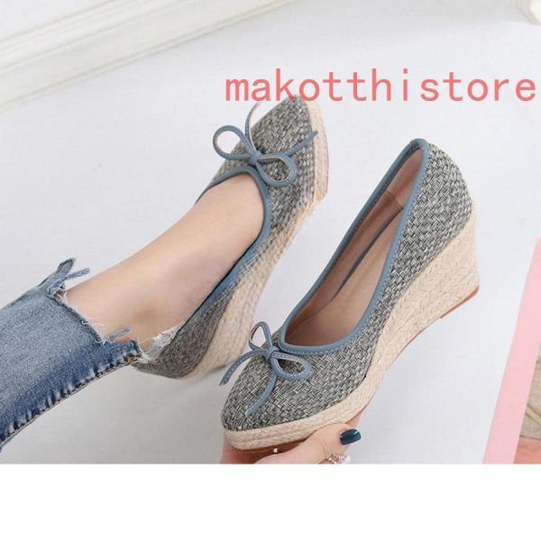 レディース ジュート ウェッジソール ハイヒール 7cmヒール 厚底 美脚 蝶結び クッション 歩きやすいS&L 痛くならない ウェッジヒール ポインテッドトゥ