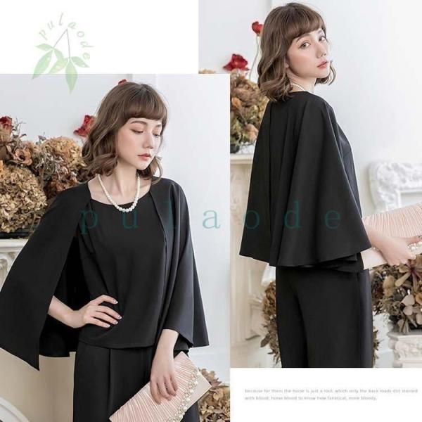 パンツドレス 結婚式 パーティードレス フォーマル ブラウス 大きいサイズ ドレス ケープ風 発表会 S&L お呼ばれ ワイドパンツ パーティー セットアップ