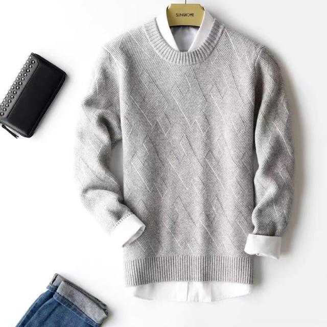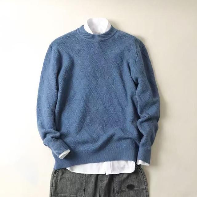 秋冬 暖かいズボン メンズ シンプル厚手カシミヤ 株式会社S&L ニットセーター ブルー S~3XL