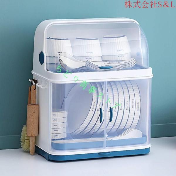 防塵食器水切りラックカバー付きプラスチック水切りかご皿立て大容量キッチン収納フタ付き大容量S&L水切りかご食器乾燥ボックス-ほとんどのキッチンデ