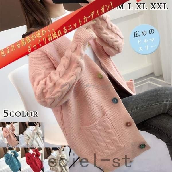 ニットカーディガン レディース ニット コーディガン アウター ケーブル編み 前開き 株式会社S&L長袖 秋冬 暖かい 厚手