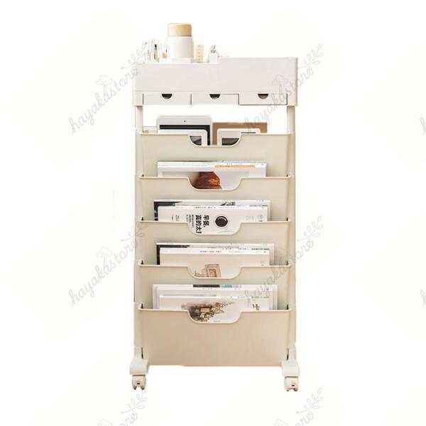 本棚 書類棚 おしゃれ スリム ブックスタンド 多機能 省スペース 可動棚 組立簡単 キャスター付 S&L 5段 絵本 漫画 雑誌 教科書 収納 学生 用教科書 文房具入れ