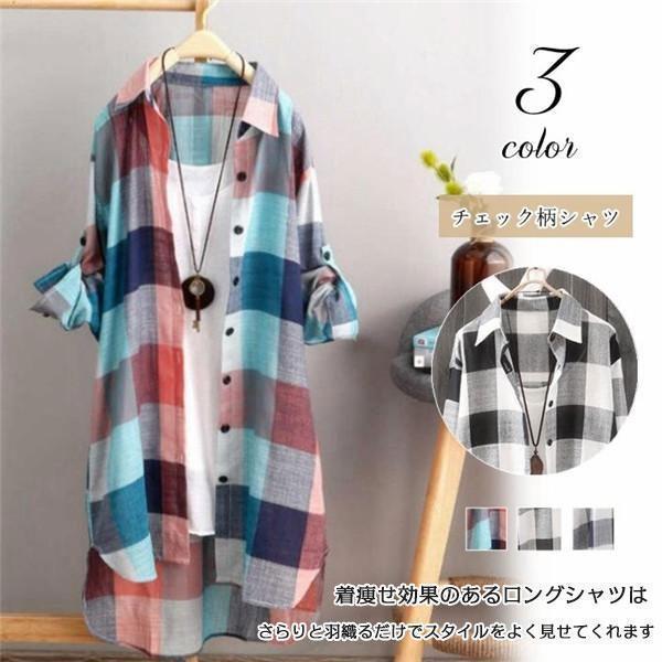 一部 チェックシャツ シャツ ロングシャツ ロングブラウス レディース 長袖 株式会社S&L チェック柄 トップス カジュアル 春秋 着痩せ きれいめ おしゃれ